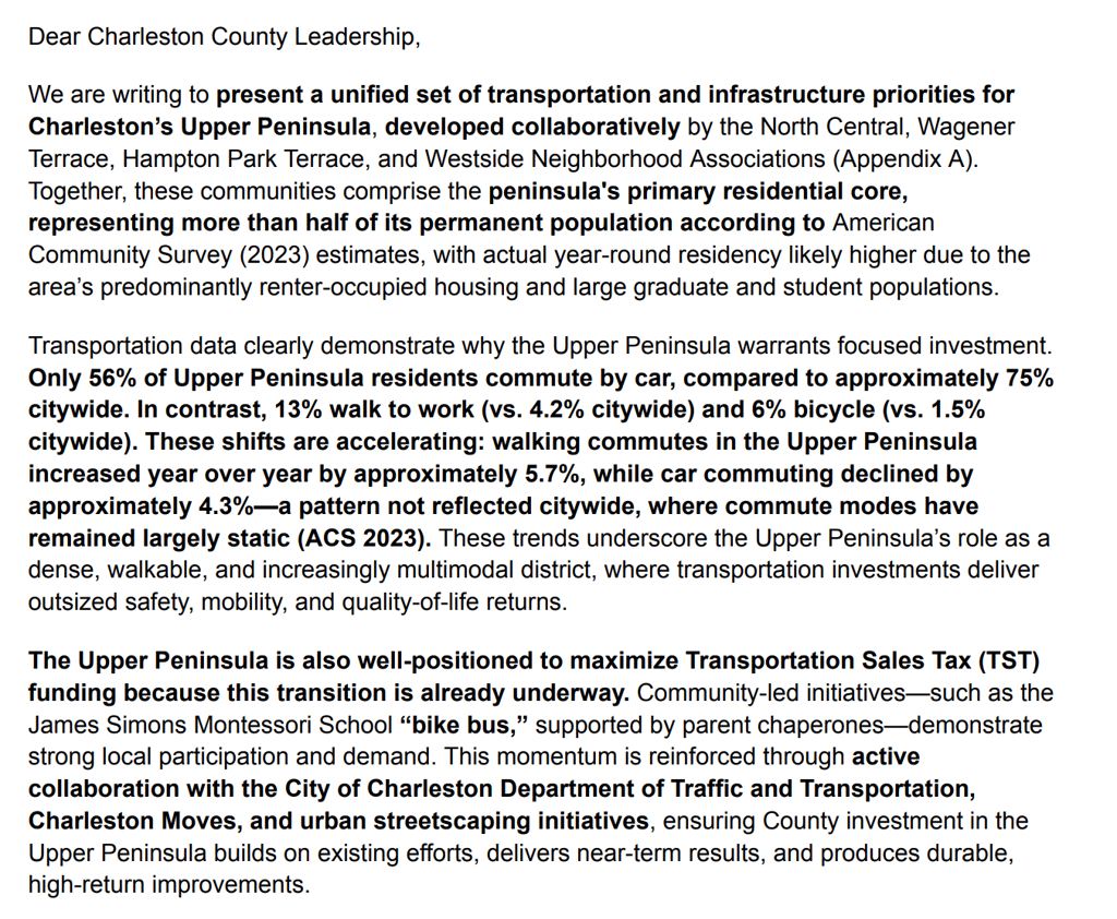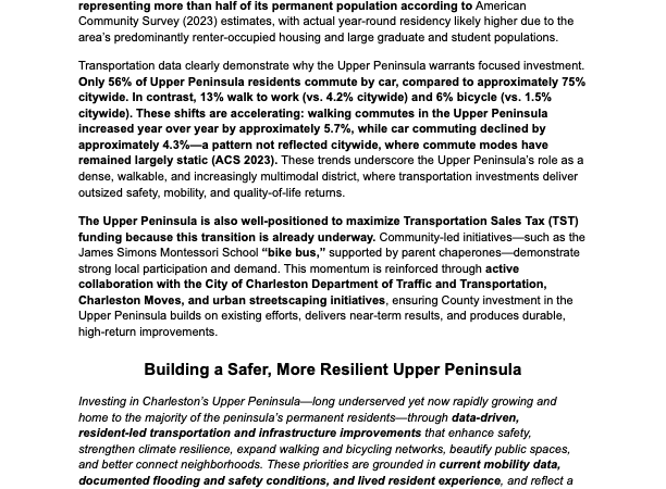 2026 Charleston County Transportation Sales Tax: How The Upper Peninsula Neighborhood Presidents Coordinated Efforts to Advocate For Our Communities in City Hall and Charleston County