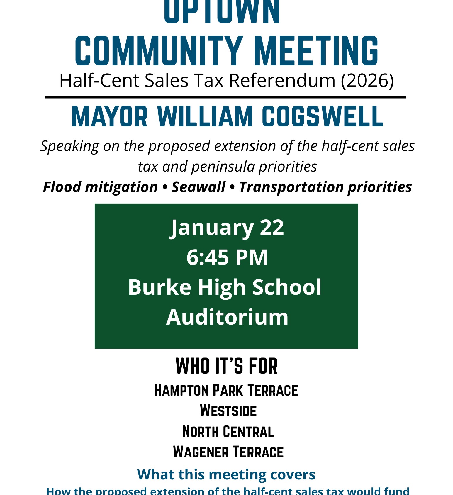 Upper Peninsula Neighborhood Presidents Schedule Public Meeting at Burke High School on 1/22 to Discuss TST With Mayor Cogswell