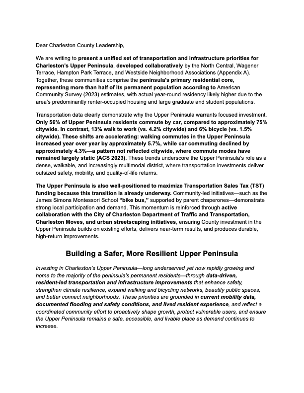2026 Charleston County Transportation Sales Tax: How The Upper Peninsula Neighborhood Presidents Coordinated Efforts to Advocate For Our Communities in City Hall and Charleston County