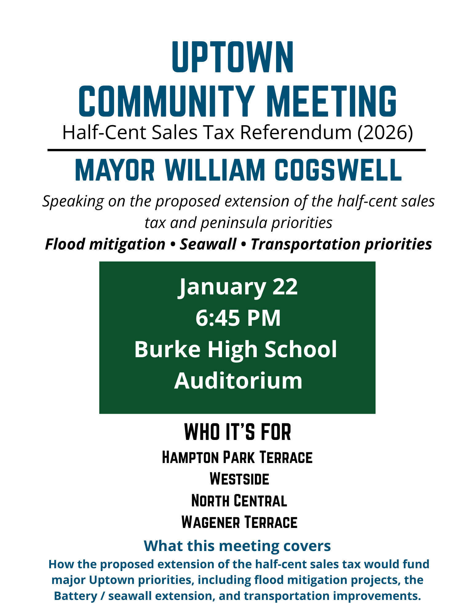 Upper Peninsula Neighborhood Presidents Schedule Public Meeting at Burke High School on 1/22 to Discuss TST With Mayor Cogswell